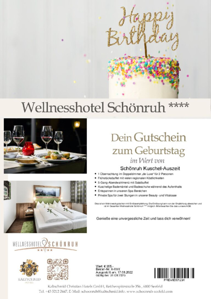 Dieser Gutschein ist für die günstigste Saison des Jahres 2026 ausgestellt und kann gegen Aufpreis vor Ort auch in anderen Zimmerkategorien und anderen Saisonzeiten eingelöst werden!
